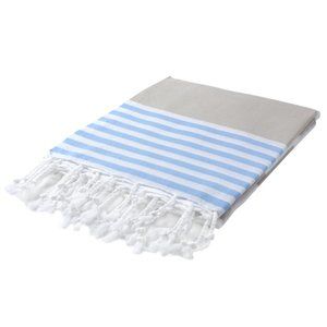 Beige Blue 100% Turkish Cotton Beach Bath Towel - Citizens of the Beach