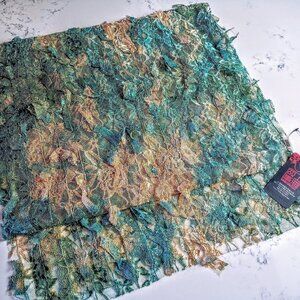 Beige Blue Chinese Silk Lace Oblong Scarf Wrap NWT