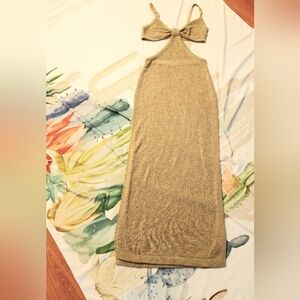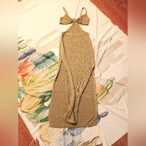 Bohemian Knit Maxi Dress with Open Back and Cut Out Sides, Slits on both sides of the skirt, Coastal, Beach, Resort wear, Tropical, Bodycon, Comfy, Neutral, Indie Sleeze, Y2K, Baddie