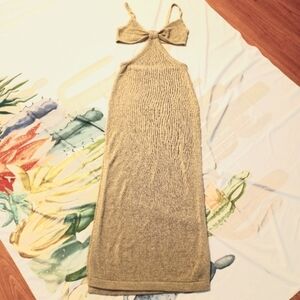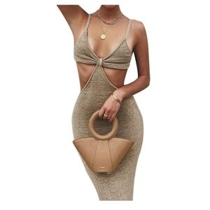 Beige Botany Bohemian Knit Coastal Bodycon Cut Out Y2K Indie Sleeze Maxi…