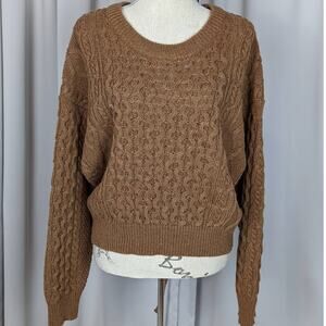 Beige Botany Cable Knit Open Back Wool Blend Sweater Brown Size Small