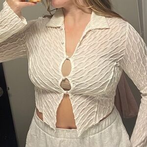 Worn once. Is quite see through. Very flattering. Size is L but fits more like a S-M. I wear a size M and I have added a picture of it on me.