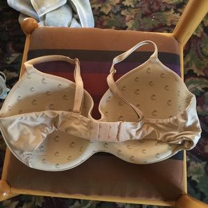 Beige bra, gently used worn maybe 4-5 times, but it's too small for me, some small stains shown in last pic