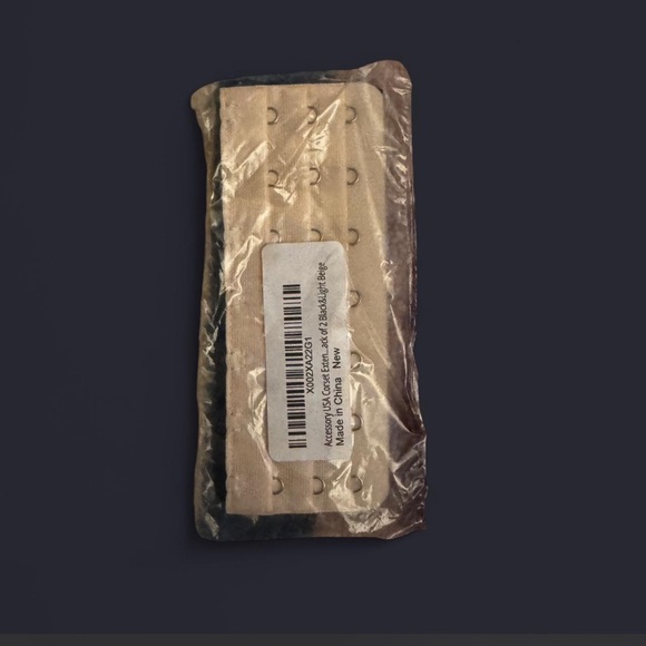 Beige bra extender in clear packaging. Soft fabric with multiple hook rows. Neutral beige color for easy matching.