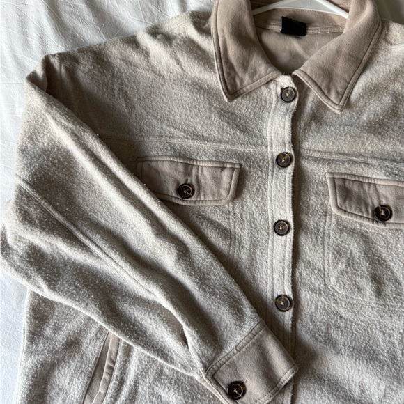 Embrace effortless style with the PacSun Tan Lightweight Shirt Jacket, perfect for layering in any season but especially fall. Crafted from a textured fabric, this jacket offers a relaxed fit and a comfortable, lived-in look. Its neutral tone ensures versatility, making it an essential addition to your wardrobe. Very oversized!