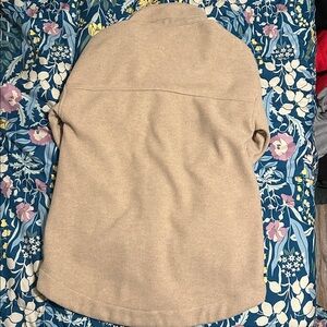 Stylish beige button-up jacket with front pockets. Perfect for layering. Material on the outside is felt. Marked as S/M but fits more like a medium. It’s only been worn a few times.