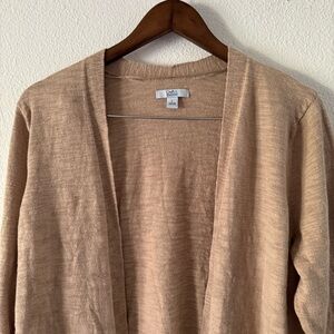 • features: This soft, light beige cardigan by Croft & Barrow features a delicate scalloped lace trim along the hem and sleeves, adding a touch of soft elegance. The open-front design and lightweight knit make it a versatile essential for layering. Perfect for a cozy, Coastal Grandma or Quiet Luxury aesthetic.