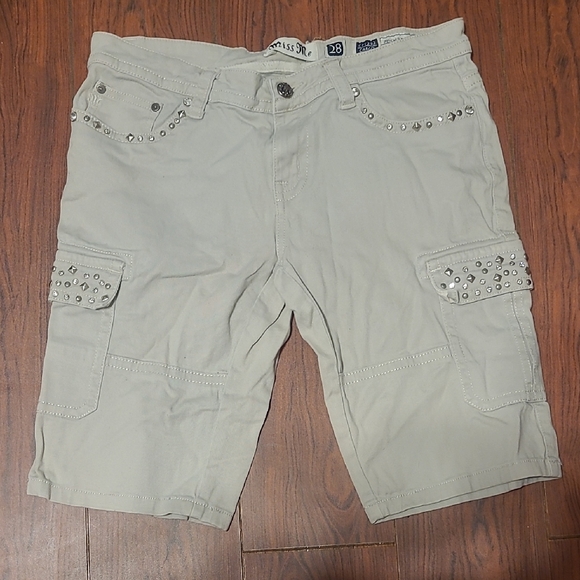 Stylish beige cargo shorts with studded details. Perfect for casual outings.