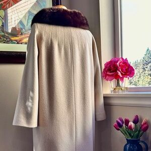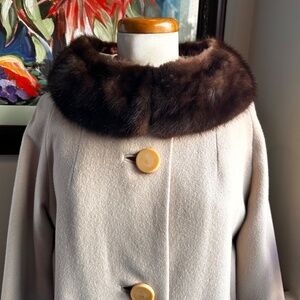 Beige Cashmere Coat w/ Brown Mink Collar MCM Vintage c1960s - Fits S-M