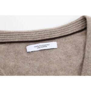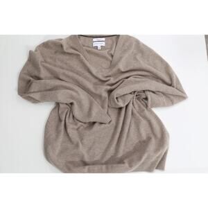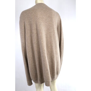 Beige Cashmere Oversized V-Neck Sweater Long Sleeve Soft Luxury Knit Size L
