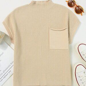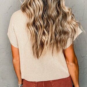 Beige Casual Women's Batwing Sleeve Knit Top With Buttoned Front