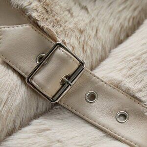 Beige Casual Women's Buckle Detail Fuzzy Coat