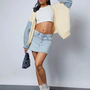 Beige Casual Women's Colorblock Mixed Fabric Sleeve Open Cardigan