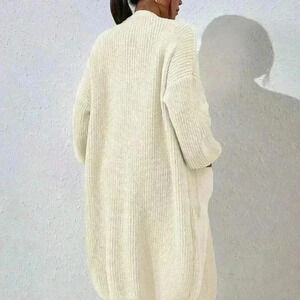 Beige Casual Women's Dual Pocket Drop Shoulder Open Front Cardigan