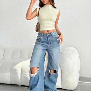 Beige Casual Women's Funnel Neck Ruched Tank Top