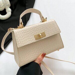 Beige Casual Women's Metallic Alligator Pattern Mini Crossbody Handbag