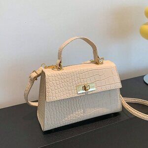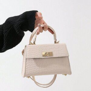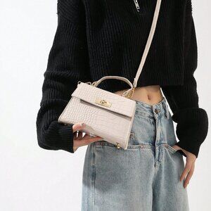 Beige Casual Women's Metallic Alligator Pattern Mini Crossbody Handbag