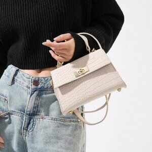Beige Casual Women's Metallic Alligator Pattern Mini Crossbody Handbag