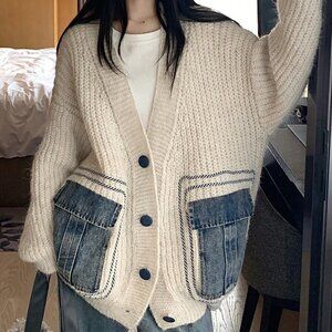 Beige Casual Womens Pocket Decor Drop Shoulder Oversized Cardigan