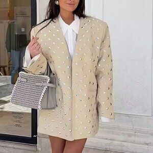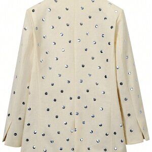Beige Casual Women's Rivet Decoration Long Sleeve Blazer Coat