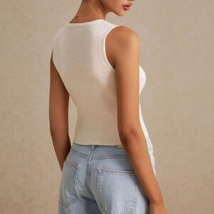 Beige Casual Women's Solid Color Sleeveless Knit Top Tank