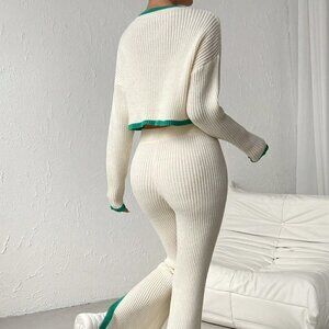 Beige Casual Womens Star Pattern Sweater & Knit Pants