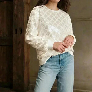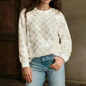 Beige Casual Women's Studded & Sequin Embellished Round Neck Loose Fit