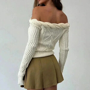 Beige Casual Women's Unique Sexy Twist Knot Off-Shoulder Design Sweater