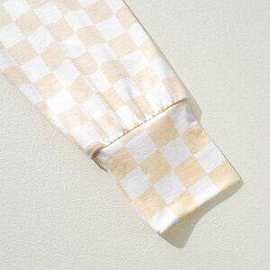 Beige Checkered Print Long Sleeve Top and Pants Lounge Set