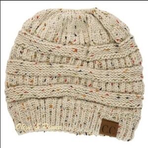 Soft Knit Beanie for your ponytail or messy bun! In Beige Confetti!
