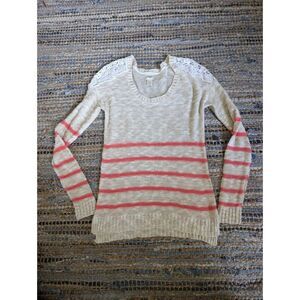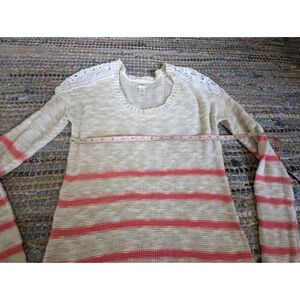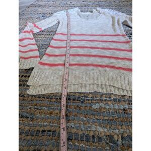 Beige Coral Open Knit Sweater Scoop Neck Striped Beige Pink L/S Tunic Beachy Coa