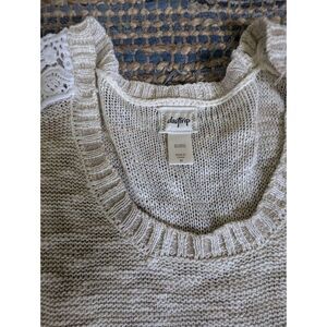 Daytrip Women's M Open Knit Sweater Scoop Neck Striped Beige Pink L/S Tunic Crochet Preppy Twee Barbiecore Balletcore Cottagecore Feminine Coquette Girlhoodcore Girly Cute Adorable