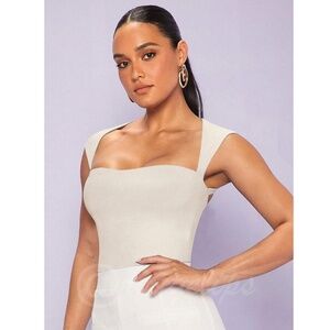 Beige / Cream Slim Fit CROP Top Sweetheart Décolleté Neckline
