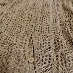 Beige Crochet Button Down Shirt