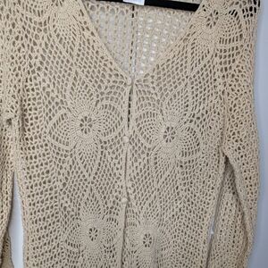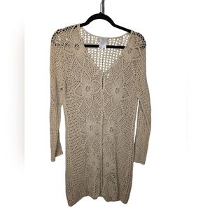 Beige Crochet Long Line Cardigan Vintage Y2K sz S