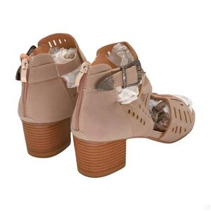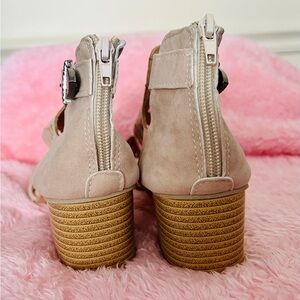 Beige Cutout Women's Sandals with Back Zipper and Western Style Buckle Strap