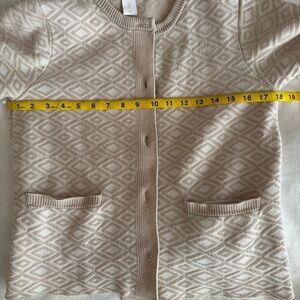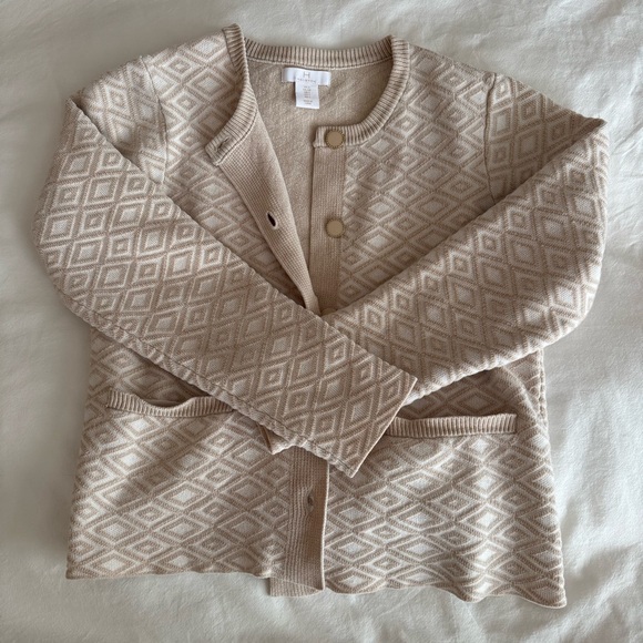 Chic diamond texture, gold buttons & front pockets. Super soft + gives effortless old-money / coquette vibes. Perfect layered or worn on its own. In perfect condition!