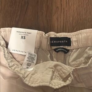 Beige cargo pants with adjustable waist band and ankle band. New with tags. Size XS.
