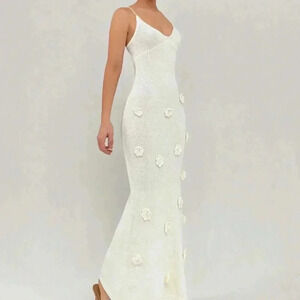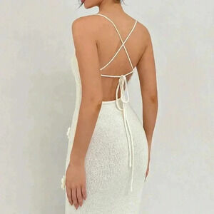 Beige Elegant Women's Backless Knit Dress With Tailored Flowers
