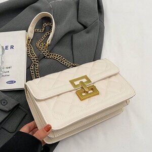 Beige Elegant Women's Square Chain Shoulder Bag Handbag