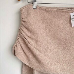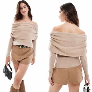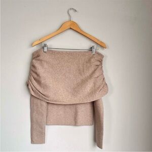 Beige Evefine Rib Ruched Off Shoulder Sweater