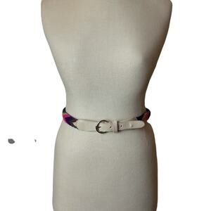 Beige Faux Leather & Multicolor Woven Yarn Belt 33"L~1"W