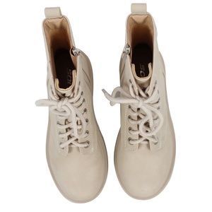 Beige Faux Nubuck Leather Combat Lace Up Ankle Boot