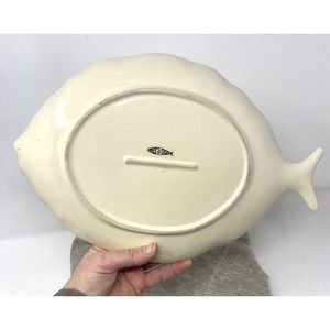 Beige Fish Shaped Ceramic Platter Serving 13.5” x 9” MER du SUD Brand