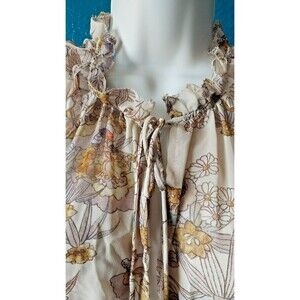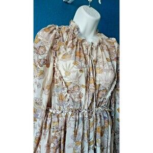 Beige Floral Fall Tier Lined Skirt Ruffle Dress Medium Womens Karlie