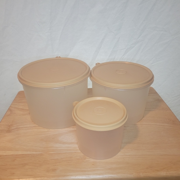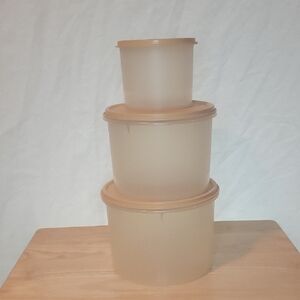 Vintage Tupperware set of 3 containers with lids in good pre-owned condition.