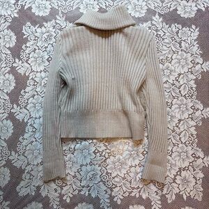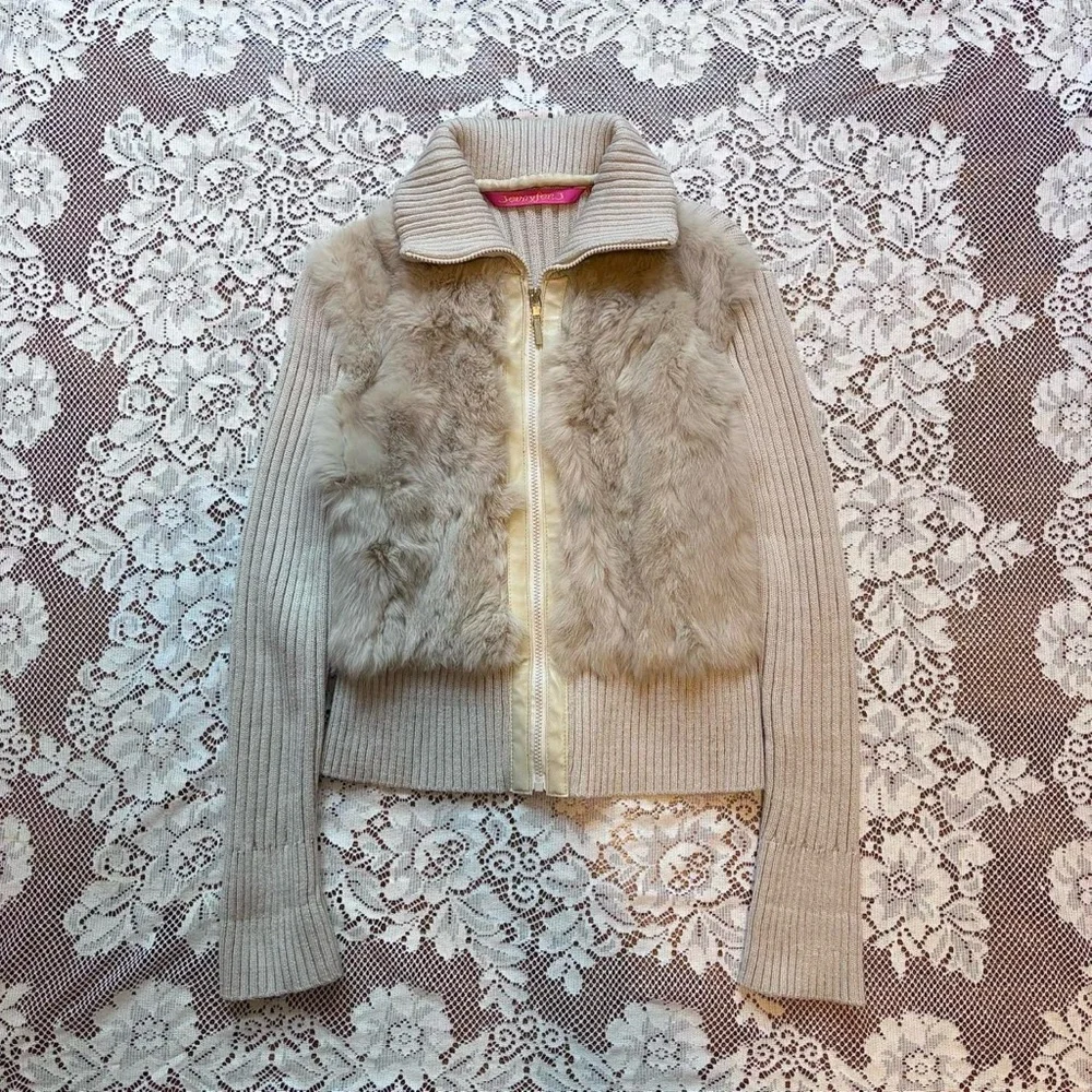 cream and tan zip-up genuine fur ribbed sweater | Jennyfer J.