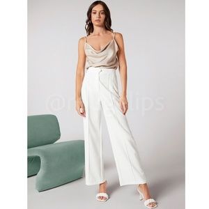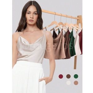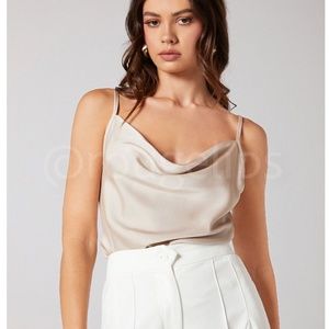 Beige Glamorous Cowl Neck Spaghetti Straps Camisole Top