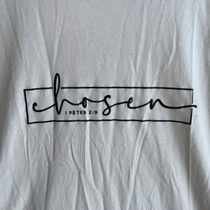 Elevate your casual style with this cozy Beige Graphic Tee featuring the uplifting 'Chosen' design inspired by I Peter 2:9. Made from soft cotton for all-day comfort, it comes in a size 2XL. Perfect for layering or styling on its own! Please see listing photos for condition, color, and any measurements. Comment with any questions and will accept most offers!
