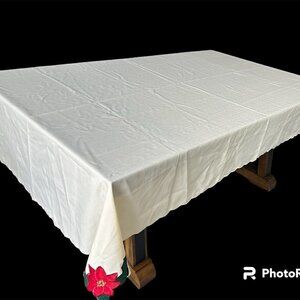 Beige Holiday Tablecloth w Poinsette Flowers 102x60 EUC